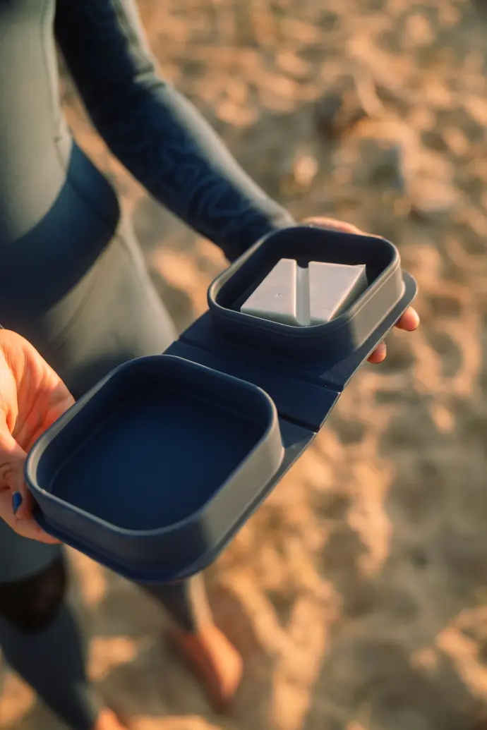 Mantén tu parafina limpia, protegida y siempre lista para surfear.