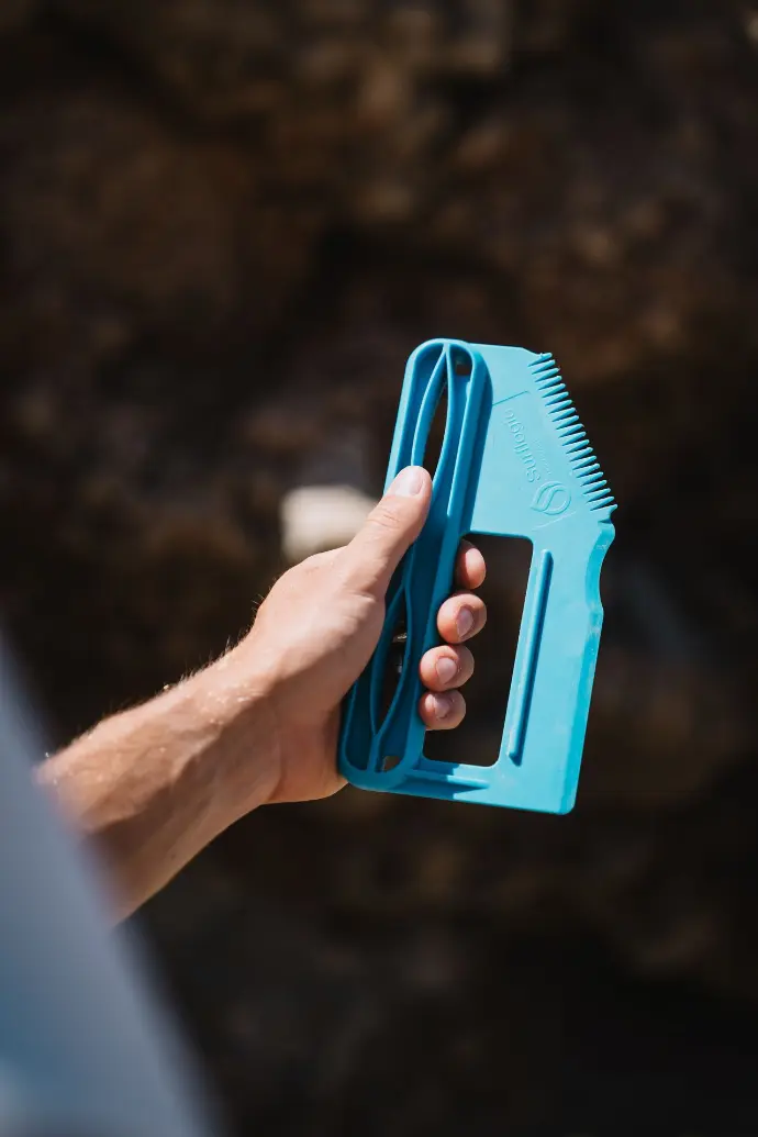 Wax & Fin Tool Surflogic: la herramienta 3 en 1 para surfistas. Quita y peina la parafina fácilmente y te ayuda a quitar las quillas FCSII sin esfuerzo. Todo lo que necesitas, siempre listo en tu mochila de surf.