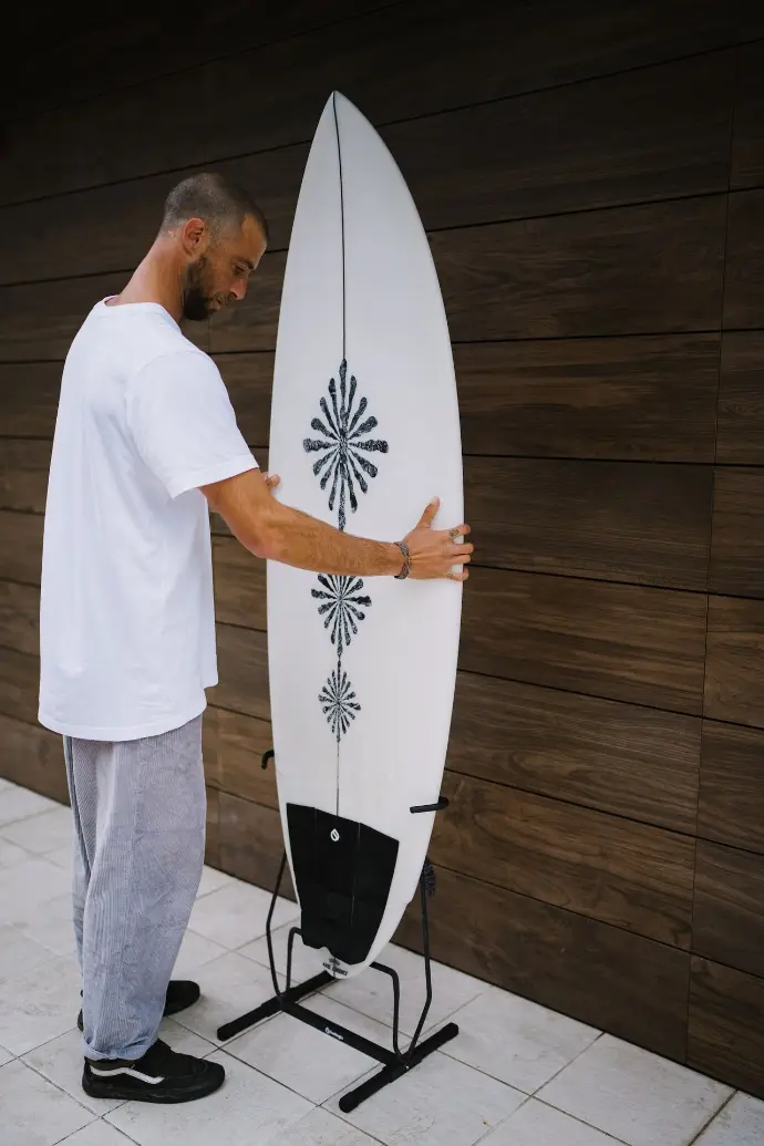 The Single Surfboard Rack with Fin Support is a practical surfboard storage solution for keeping one board upright, secure and easy to access. Its vertical design helps save space while keeping your surfboard properly supported during storage. Built with heavy duty powder coated steel, it offers reliable strength for everyday use. Rubber protection tubing on the contact points helps protect both fins and rails from scratches and pressure marks. Clean, stable and functional, this surfboard rack is a simple way to keep your board organized and protected when it is not in the water.