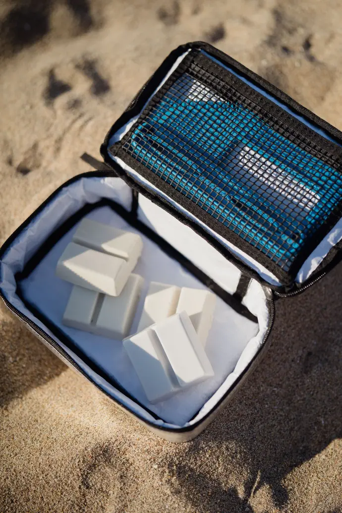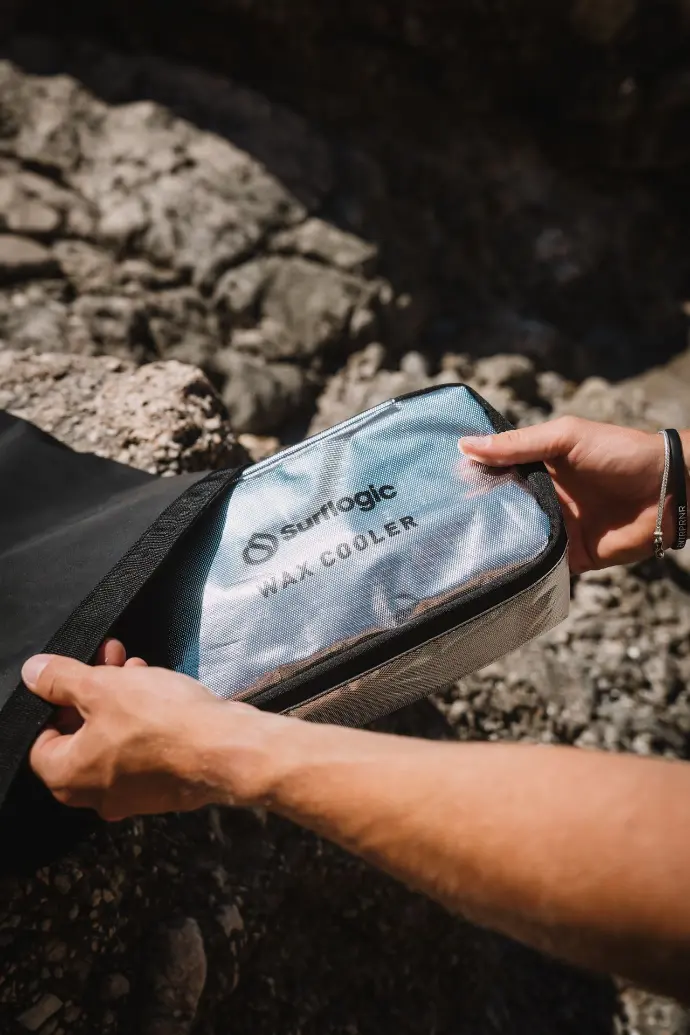 Surflogic Wax Cooler: keep your wax fresh and ready for every session. Compact and durable, with reflective fabric and EVA foam walls to protect your wax from heat. The perfect case for surfers who travel and want their gear always ready.